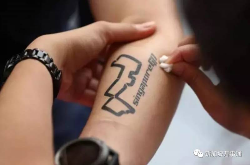 在看表演的间隙,你还能做一个“假纹身”。纹上新加坡F1 大奖赛的Logo,证明你不虚此行。