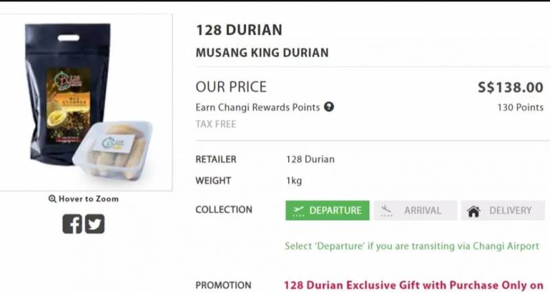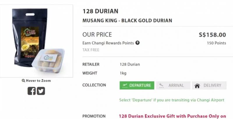 从即日起你便可以从樟宜机场的网站上预定猫山王了!