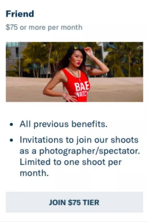 好友,每月75美元。每月能选择参加一位美女的拍摄过程;