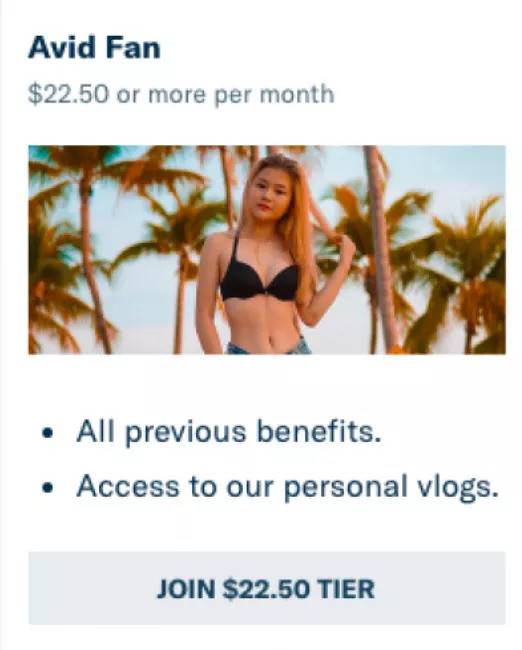 热心粉丝,每月22.5美元。可以看每天拍摄的性感美女日常(vlog);