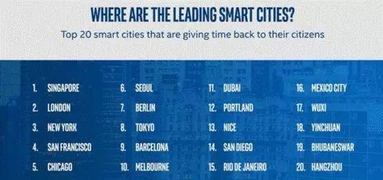 今年一项由英特尔赞助的Juniper Research调查,在出行、医疗、公共安全和生产力四个方面对全球 20 大智慧城市进行了排名。