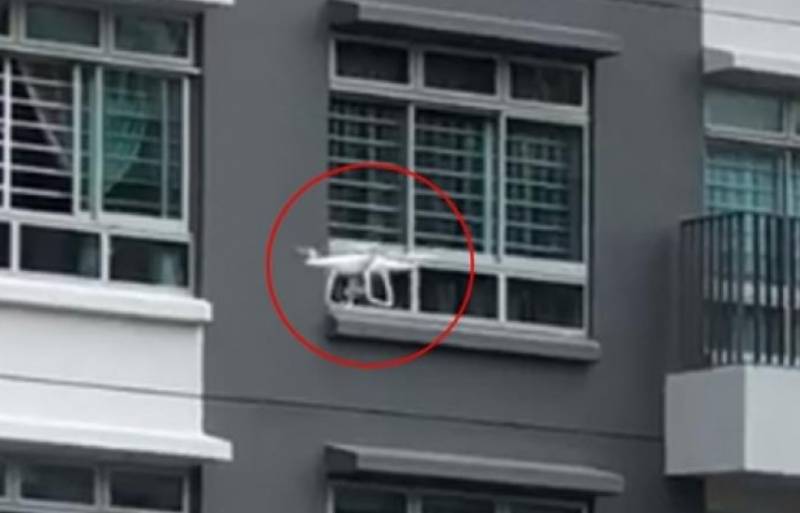 在新加坡榜鹅地区,惊现无人机在组屋卧室厕所窗外徘徊,