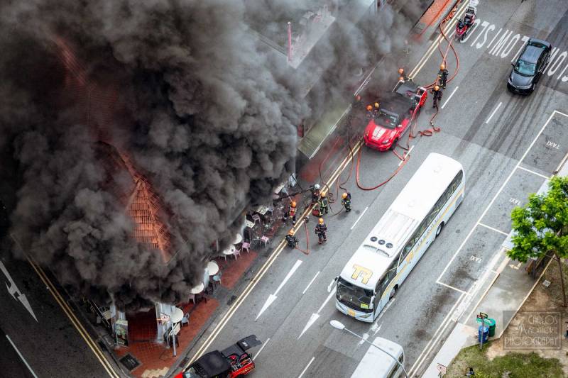 牛车水咖啡店起火 滚滚浓烟窜天际