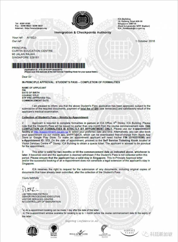 在同学们拿到offer、签署学生合同并支付首期学费后,如签证材料齐全,科廷新加坡相关老师将及时向移民厅提交学生签证申请。之后同学们只需坐等学校的出签通知,拿到IPA letter(签证批准信)即可准备机票,启程新加坡啦!