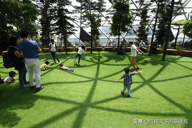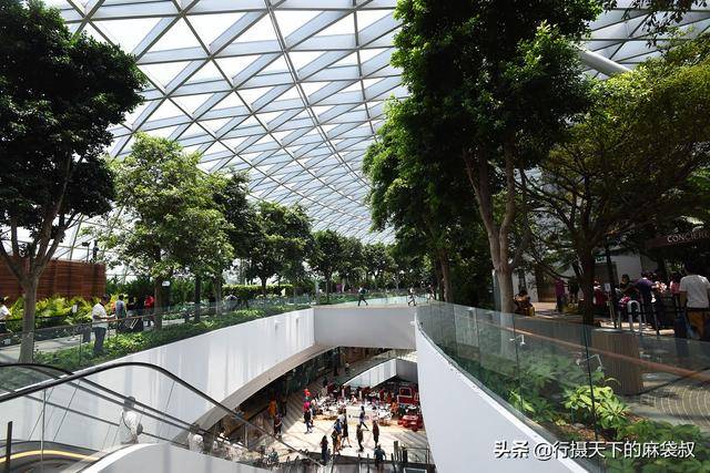 顶层的花园布满了绿色植物,下面几层是商业街,吃喝玩乐尽在星耀樟宜