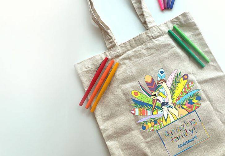 在Club Med活动摊位上释放孩子的内心艺术家。在为自己的Club Med手提袋上色时,让他们的创意果汁流淌。