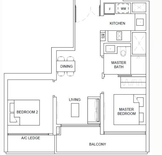 二卧室,合536套。套内面积58平方米(624平方尺)至91平方米(980平方尺),整套售价从1,065,000元起。特点是户型方方正正,布局合理,无浪费空间,客厅和主人房共享阳台。二卧室有Compact、+study和Premium三个户型供选择。这样的户型非常适合夫妻情侣享受二人世界,也很适合有个小孩的夫妻,以及专业人士和学生。除了自住,也适合出租给高端专业人士。