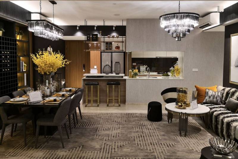 在套间设计上,力求所有单元均有无阻挡的宽阔视野或泳池/草坪/公园美景。在室内设计上,客厅和餐厅采用大理石地板,卧室采用高级木地板。厨房配备燃气灶和伸缩罩(Gas Hob & Telescopic Hood )、烤箱、冰箱和垫圈暨干燥机(Washer cum Dryer )等。公寓提高1,259套1-4卧室单元。