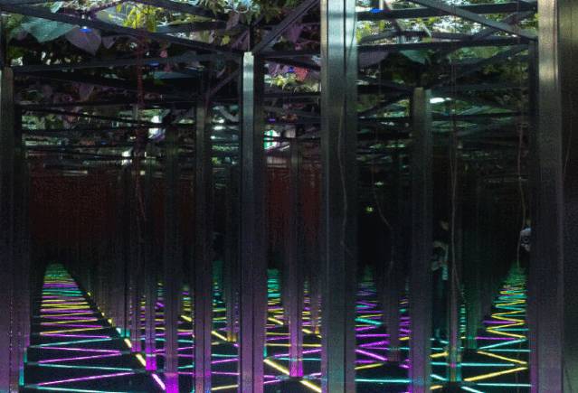 迷宫上方是层层绿荫,通过镜子的折射,仿佛没有尽头,比起小清新的树篱迷宫,更多了几分神秘感,喜欢玩“密室逃脱”的朋友不能错过!