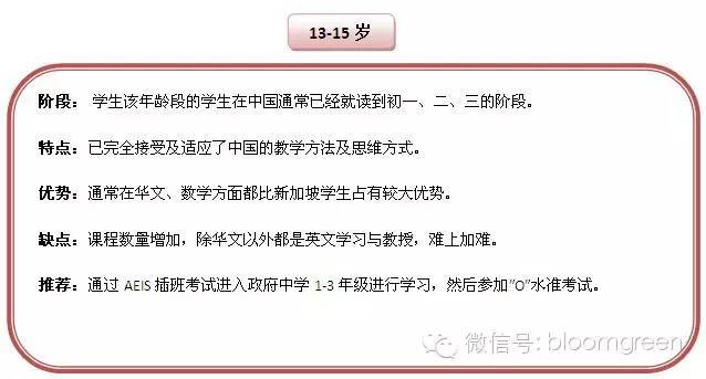 中学:年龄在 13~16+岁,符合新加坡教育部和政府中学的入学要求。
