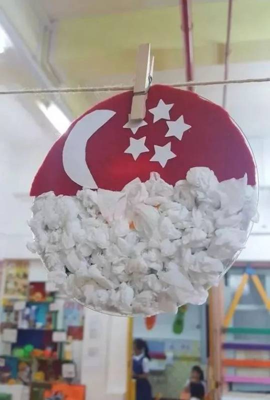 这些小朋友们用自己的双手,做了新加坡国旗,虽然成品略显青涩稚嫩,但是是他们最真诚的祝福~
