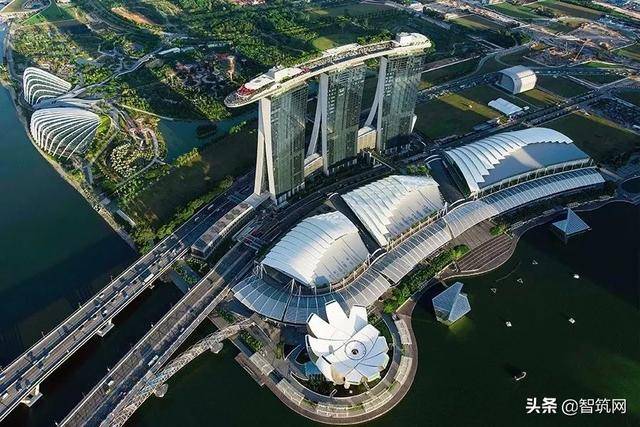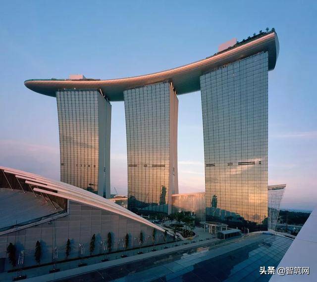 大厦顶部由号称亚洲最大的 Sands Sky Park (空中花园)连接而成,可以说,落成于 2010 年的滨海湾金沙酒店,是建筑历史上里程碑式的优秀作品。