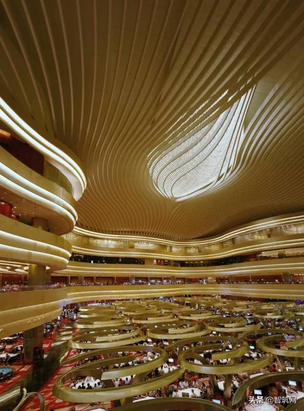 地下赌场是全球最豪华的赌场之一,金碧辉煌,热闹非凡,屋顶流畅的线条设计简约大方又不失美感。