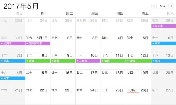 - 5月:劳动节(5月1日),恰逢周一;卫塞节(5月10日),恰逢周三,前后请假2天可以凑5天长假!