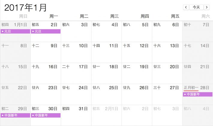 - 1月:元旦(1月1日)和中国农历新年(1月29日)都落在周日,因此第二天的周一就是公共假期了。