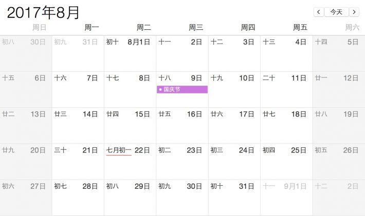 - 8月:国庆节(8月9日)!虽然落在周三有点尴尬,不过前后请假2天,就能凑出一个5天的小长假呢!