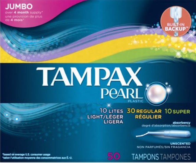 4、TAMPAX 丹碧丝 Pearl Plastic 珍珠塑管 卫生棉条 50条装