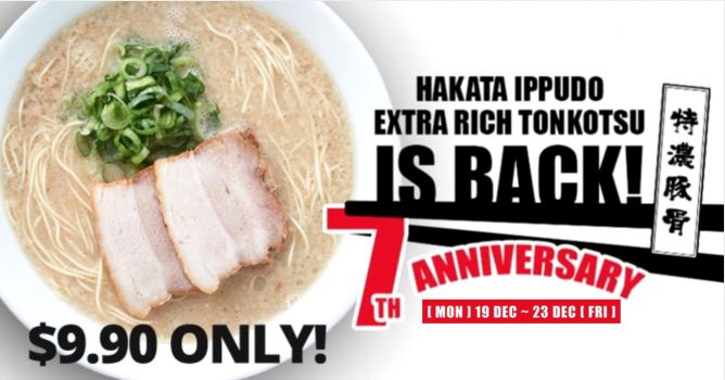 大概是坡坡人民对拉面的爱意实在是比天还高比海还深~一风堂拉面七周年庆的活动特别延期到23日啦!还是$9.9就能享受一碗热乎乎的加量版Tonkotsu拉面!