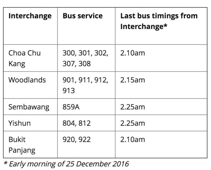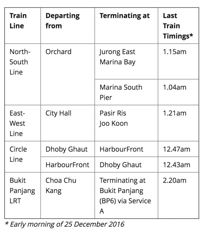 当然啦,再怎么狂欢我们也是要回家的~SMRT 和 SBS Transit 都增加了末班车次,谁都不用担心平安夜会露宿街头!