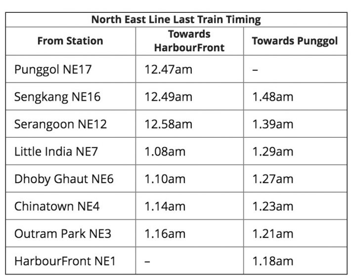 12月24日平安夜,新加坡 North East and Downtown Lines 这两条地铁线路以及几条主要的轻轨路线也会延长运行1小时15分钟。