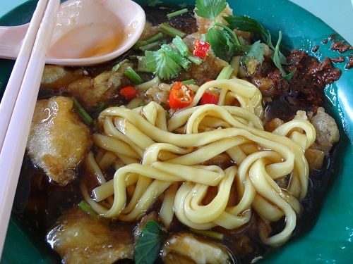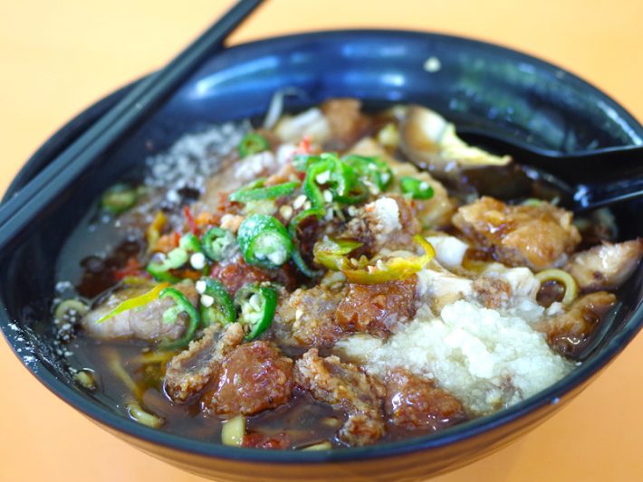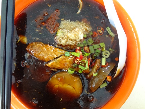 Old Airport Food Center 里面另一家人气卤面摊。老板自称拥有至少50年的做面经验,你尝过他们家的卤面之后,会相信老板没有瞎吹牛的。肉汁很浓稠,加入了大蒜等香料,很好的平衡了香气。碗里满满都是炸鱼和卤蛋,份量很足。