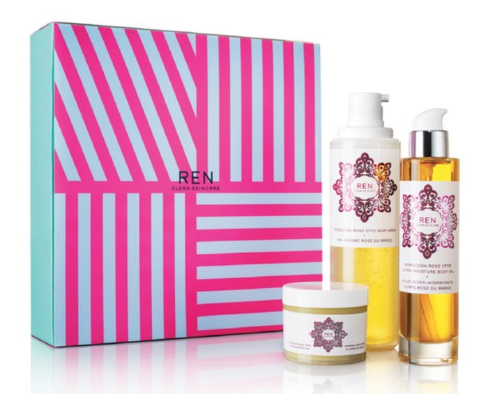 这款REN LUXURY MOROCCAN ROSE OTTO BODY COLLECTION摩洛哥奥图玫瑰身体护理三件套装包括沐浴露200ml+润肤油100ml+磨砂霜75ml各一瓶,是其最畅销的摩洛哥玫瑰系列2016的圣诞礼盒款,玫瑰系列连续13年获得 InStyle 最佳沐浴产品大奖,奢华的摩洛哥玫瑰精油都是采取奥图的方式萃取,更加的自然清新,并且滋润保湿,是孕妇都可以安全使用的。