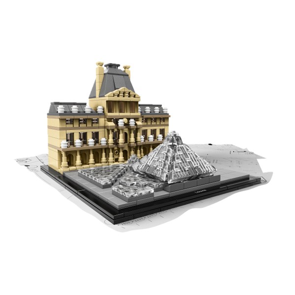 LEGO Architecture Louvre Building Set,货号21024,为乐高建筑系列2016年新款,共包含颗粒695个,算得上复杂了,包含钟楼馆以及标志性的金字塔入口。