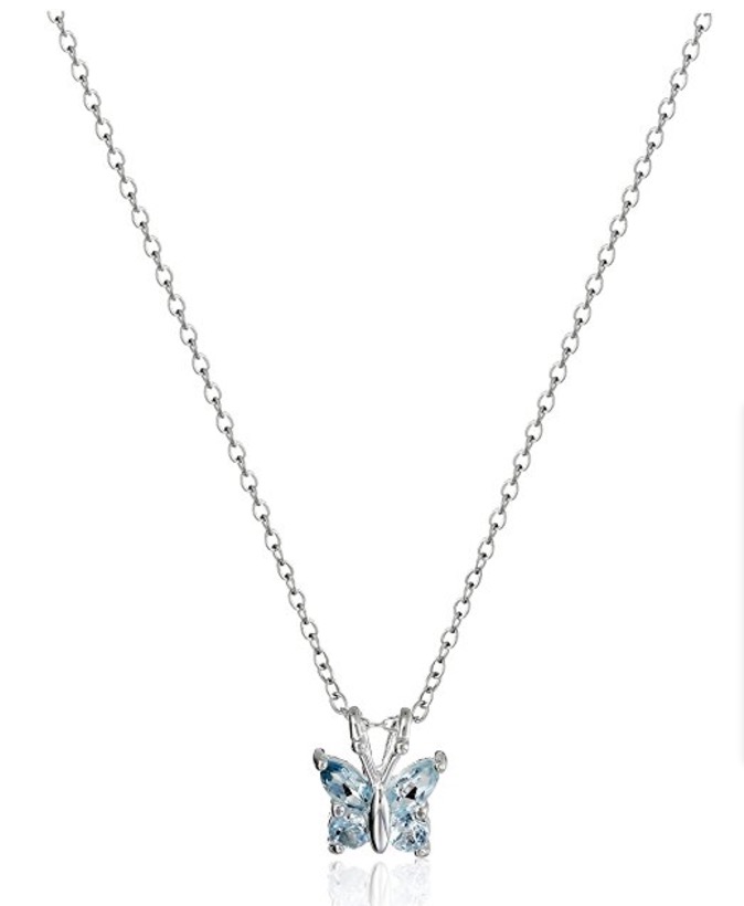 3、Amazon Collection Sterling Silver 纯银蝴蝶宝石吊坠项链 18寸