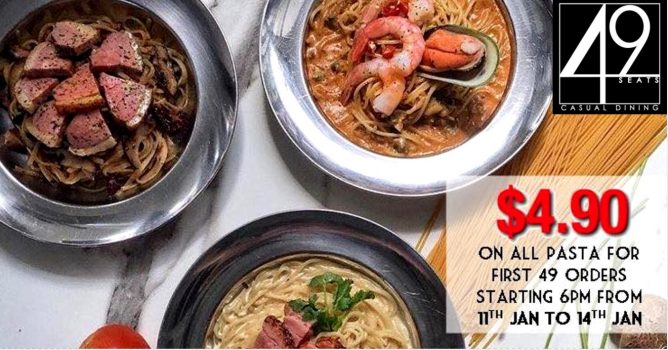 49 Seats搬家前的超级美食特别活动~1月11日至1月14日,前49位顾客都可以享受意面仅需$4.90!去迟了也不用森气,后面的顾客也是可以享受意面20%off的!