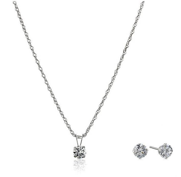 4、Amazon Collection 10K金 施华洛世奇元素 项链耳钉套装