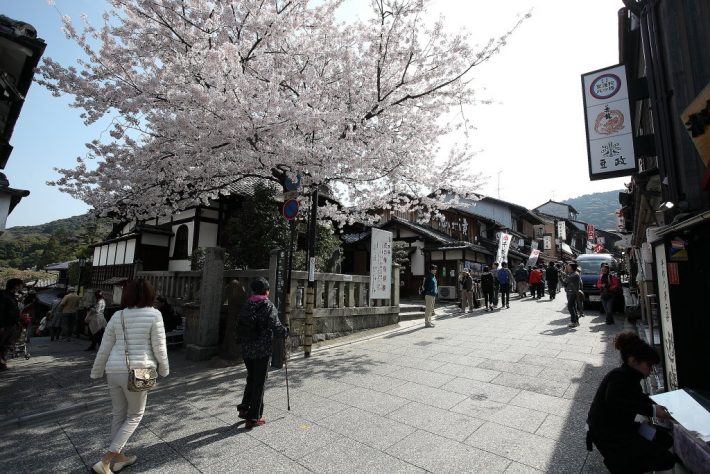 产宁坂是靠近京都清水寺的一段石阶路。每当樱花开放的时候,沿着石阶拾级而上,漫步在古老京都的怀旧情怀之中。清水寺也是京都赏樱的胜地之一,可以顺路过去游览。