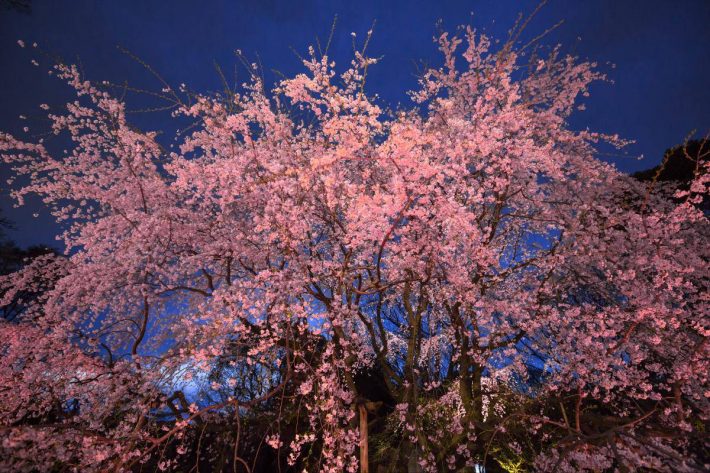 仁和寺的枝垂樱飘零之时,也意味着京都的春天结束了。仁和寺的樱花是有名的“低花”,树高仅2公尺,可以无限接近到绝美的樱花。