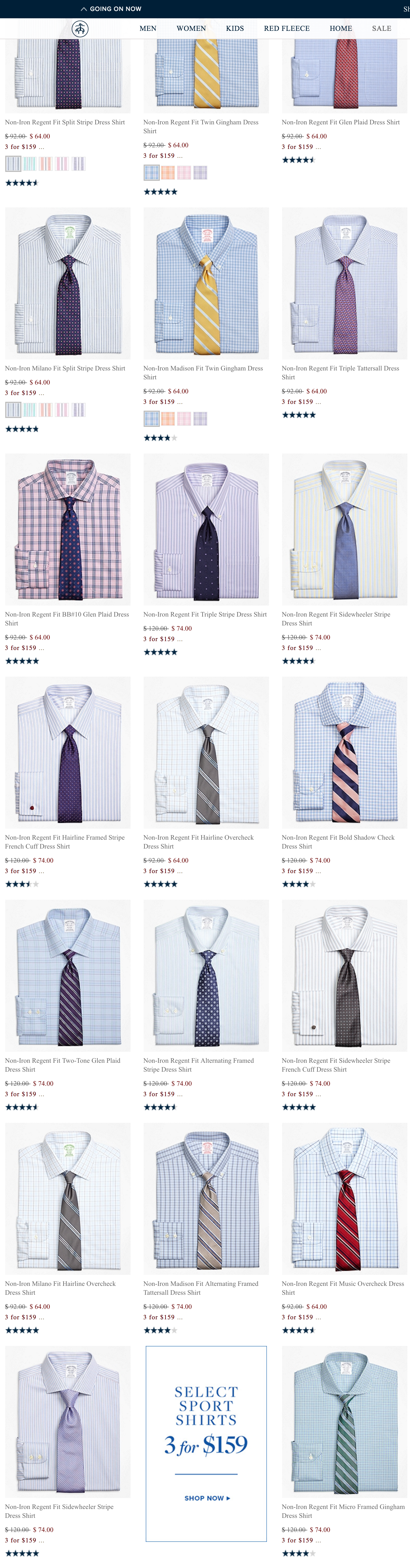 Brooks Brothers美国官网现开启了精选衬衫促销活动,活动共分为男士正装衬衫、休闲衬衫和女式衬衫三个专场,专场内衬衫享受3件159美元优惠,不限同款,款式众多,大部分尺码齐全,其中男士正装衬衫专场内衬衫全部为免熨款式,条纹/格子款均有涵盖。该站目前还有冬季清仓促销和外套促销活动正在进行,清仓服饰低至3折,男女童款均有涵盖,款式齐全,夹克外套4折优惠,感兴趣的皇后粉可以前去挑选一下。