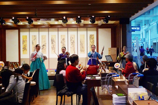 如果想要顺便了解一下韩国的传统文化,韩国首尔仁川机场还有一个文化中心,能够欣赏韩国传统短剧、乐器表演,还能亲自动手制作韩国传统文具。