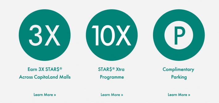 - 专属STAR$® Xtra 计划,CapitaLand Malls指定60多家商铺,每S$1可获50 STAR$!