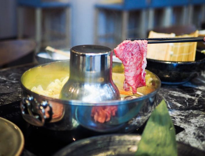 清酒日式火锅也是这家店的一大特色之一。这种汤底在日本已经非常流行,不过在新加坡还不多见。清酒的加入让汤底更加鲜美清甜,点一份A5和牛牛肉锅,一边涮肉一边喝汤,吃完更是整个人都暖烘烘的。