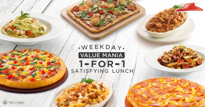 必胜客的工作日午餐菜单更丰富了!所有Pizzas, Pastas and Entrées,只要你想,就能在午餐时段尽情享受!拉上一个你的小伙伴,一起去享受必胜客午餐1 for 1吧!