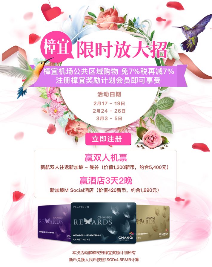 提醒大家,本活动仅限樟宜奖励计划会员,大家必须提前注册哟~