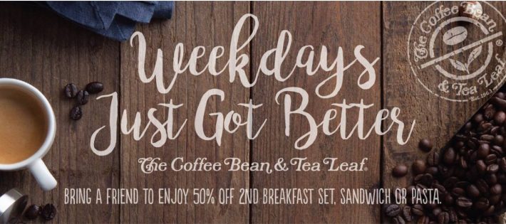 The Coffee Bean & Tea Leaf 可不是只有茶叶和咖啡豆卖哦。它们家的早餐也是超好吃的!现在更是可以享受第二份套餐半价!拉上家人或是室友,一起吃顿美美的三明治或是意大利面吧!(全天供应