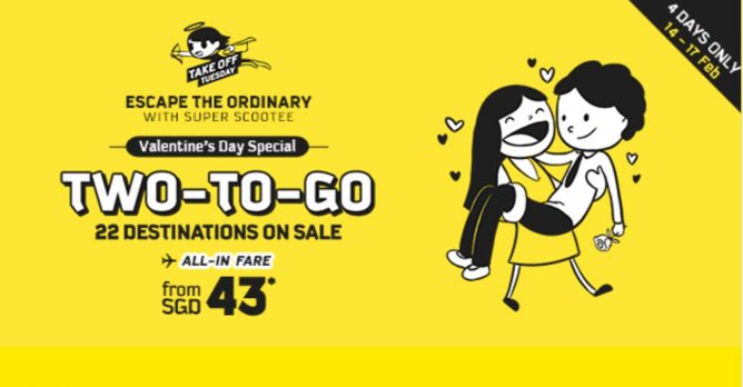 爱对了人,情人节每天都过。找对了航空公司,机票每天都有惊喜~酷航情人节机票特卖持续中,飞往Perth, Gold Coast, Seoul, Athens, Bangkok等超多目的地的双人机票,最低$43起哦!让你的情人节更完美!