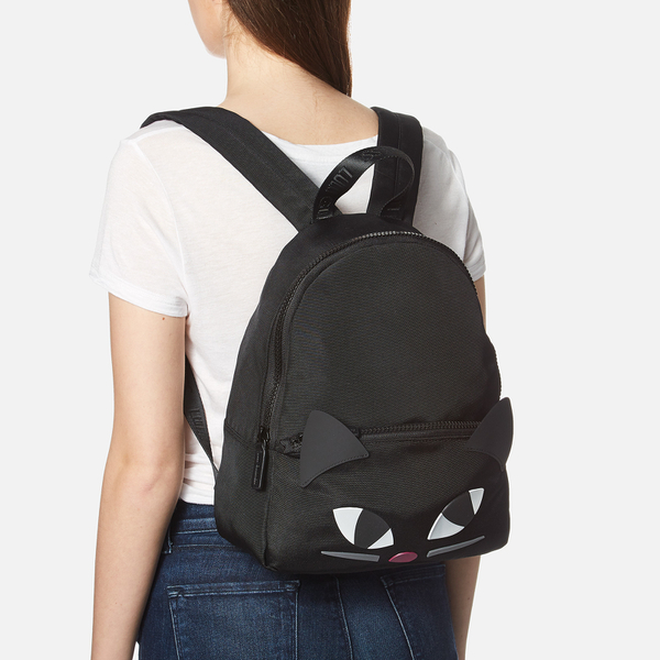 这款双肩包采用的是尼龙与塑料和涂层金属五金制成,背包形成一个圆形轮廓与拉链顶盖,揭示宽敞,完全衬里主隔层内部拉链和滑动袋。并且还提供经典可调节肩带以及额外的顶部提手。前面有一个外部拉链口袋,饰有猫贴花细节,展示露露的招牌古怪风格。