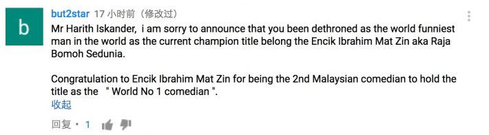 好棒棒哦,那要不要给你颁个连续两届马来西亚喜剧大赛的冠军呀?