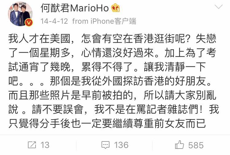 这几天,最火的话题当属赌王四房的三太子——何猷君。 他在3月13日发的微博,立刻引来大批吃瓜群众的围观。