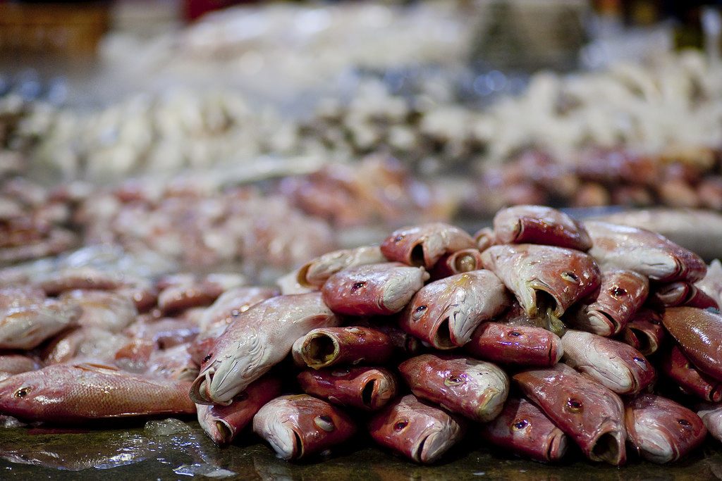 鱼贩们穿着橡胶靴,忙着整理和称重刚刚捕捞上来的海货。
