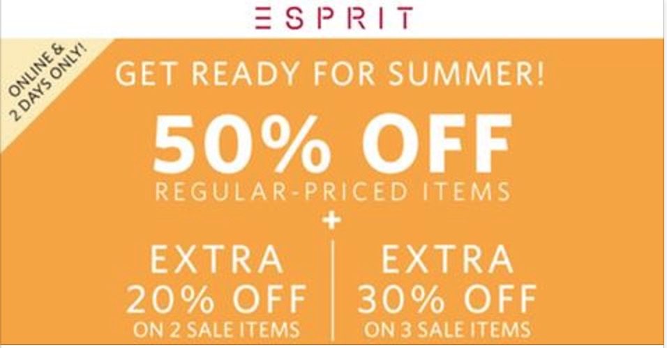 眼看着坡坡又要进入一年中最热的几个月了,是时候往衣柜里塞一些舒适轻薄的新衣服辣!Esprit 限时闪购,正价商品50%off,两件额外20%off,三件额外30%off!感觉手要剁烂了~
