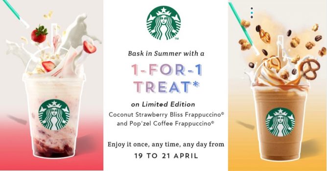 仅限这一周的星爸爸限量饮品买一送一辣!抱紧手拿星享卡的小伙伴的大腿,享受Coconut Strawberry Bliss Frappuccino© & Pop’zel Coffee Frappuccino©(草莓椰子/咖啡星冰乐)的冰爽刺激吧!