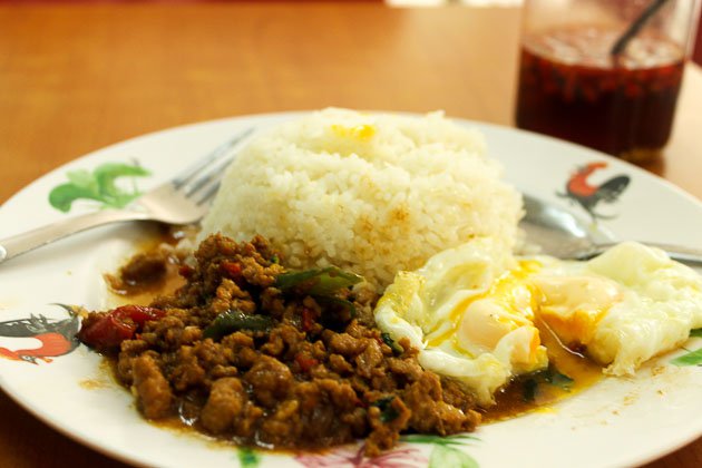 罗非鱼鸡肉配米饭再加一个煎鸡蛋只需要$6!